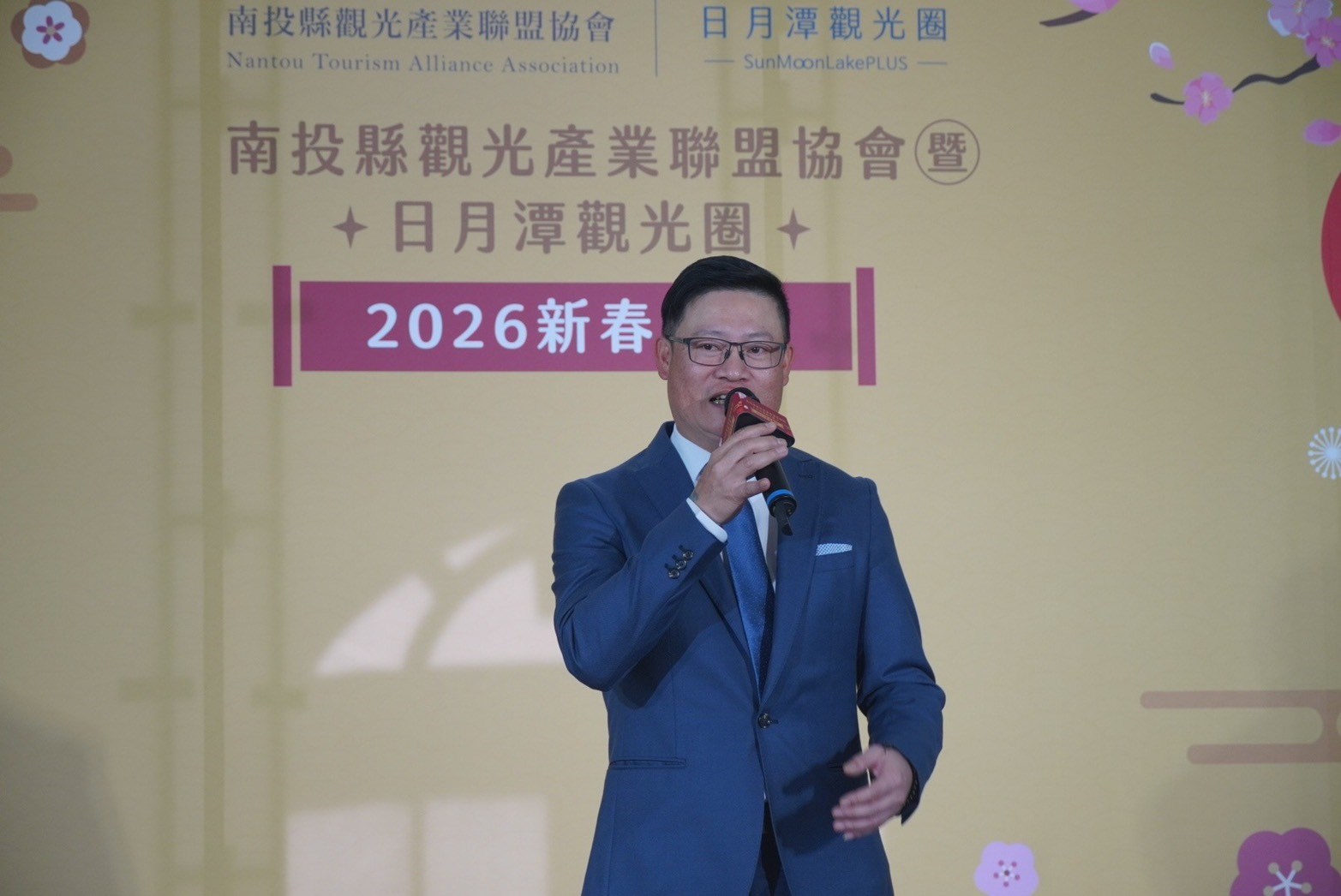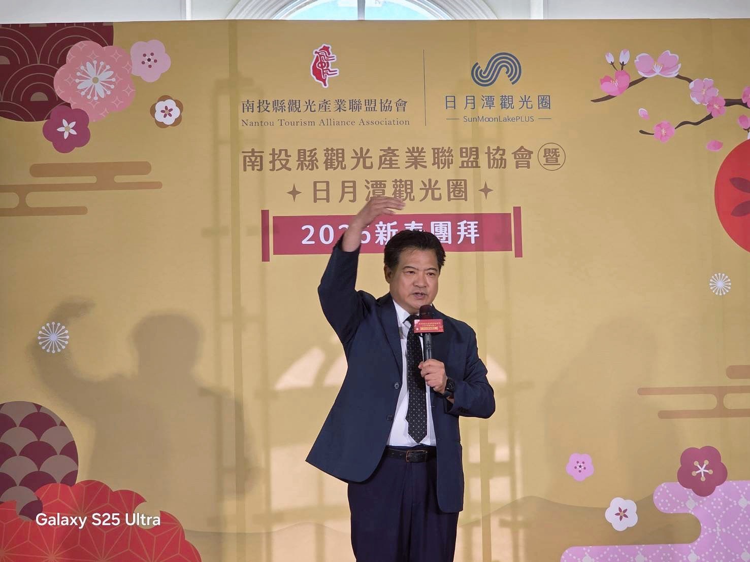 南投縣觀光產業聯盟協會理事長魏振宇表示,感謝南投縣政府與交通部觀光署日月潭管理處長期以來的支持與肯定。回顧過去一年,協會協助縣府辦理多場國內旅展活動推廣,並整合海外市場資源,前往日本、香港及泰國等地進行觀光宣傳,有效提升南投觀光能見度;同時推出「南投好康月」等行銷活動,活絡旅遊市場,有助於區域觀光持續發展。