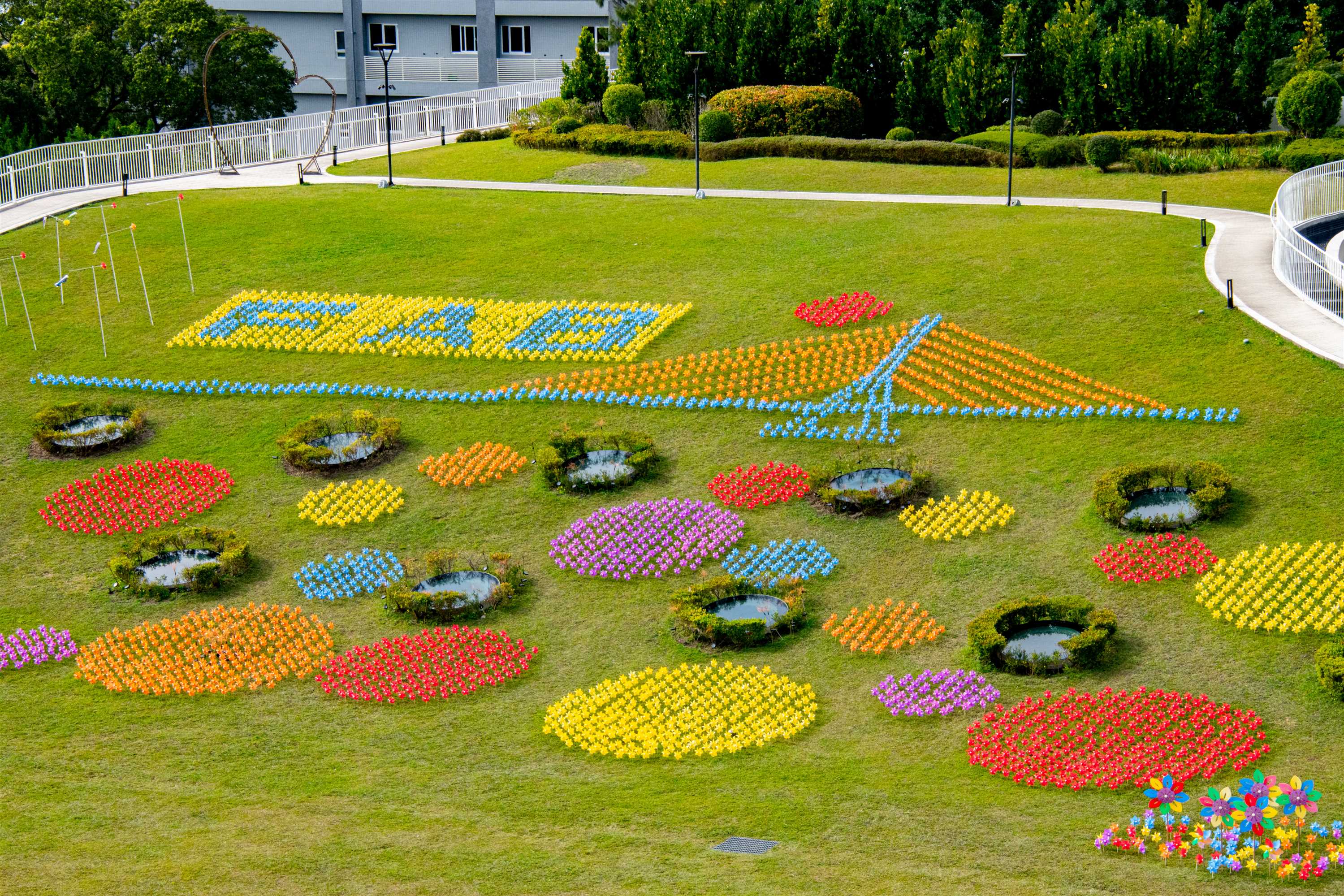 ▲設計以「風動城市、匯聚未來」為核心概念,運用超過4,000支風車排列出具象徵性的地景畫面。(圖/將捷金鬱金香酒店 提供)