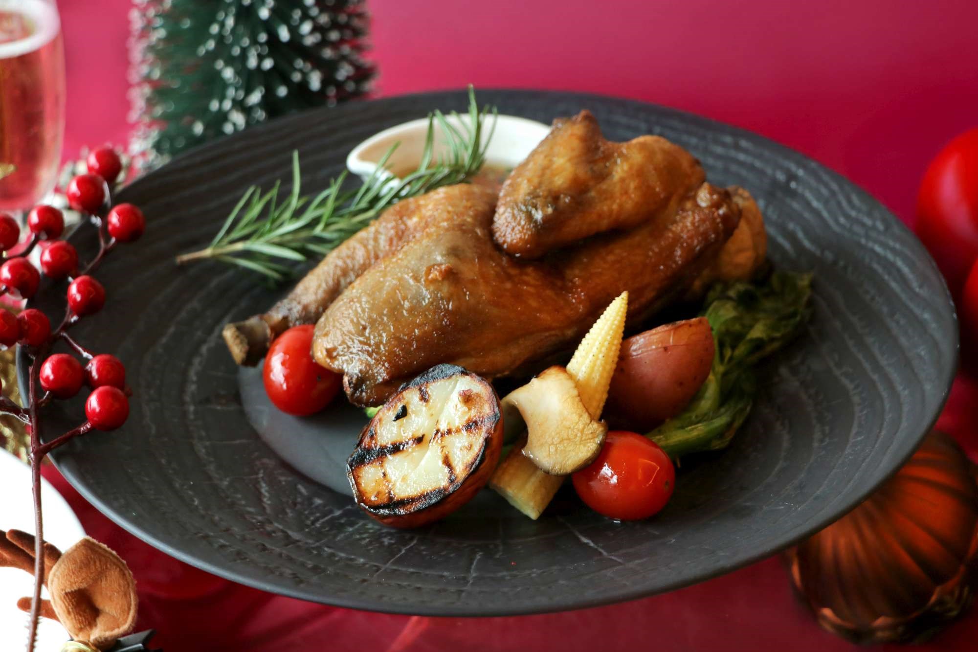 ▲迷迭香烤雞則以香草醃製入味,外皮烤至金黃酥脆、肉質鮮嫩(圖/大地酒店提供)