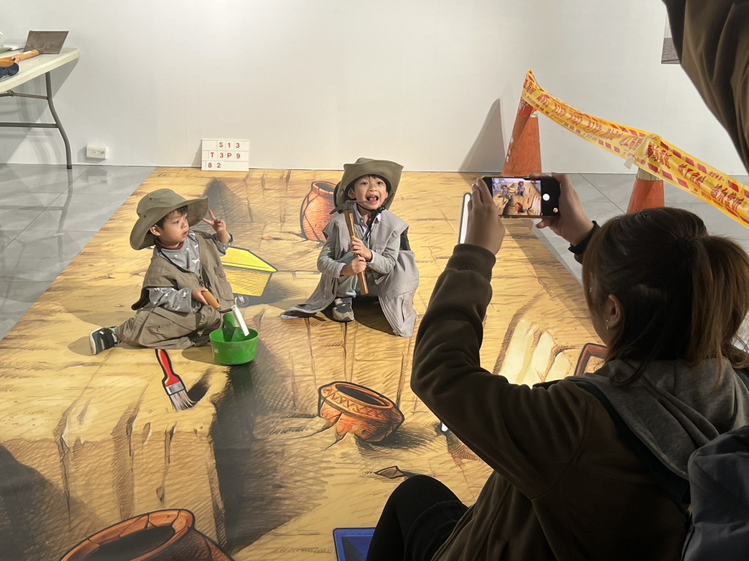適逢寒假與春節期間,滬尾藝文休閒園區也成為親子走春與假期出遊的全新選擇,本次展覽將考古探索的樂趣帶入現代藝文空間,視覺亮點包含超擬真的「3D考古發掘探坑地貼」,讓民眾彷彿走進歷史現場,並透過微縮模型與標本,近距離認識千年前的聚落生活。展區同時打造「沉浸式扮裝互動區」,邀請大小朋友化身「一日考古學家」,搭配陶罐拼圖等互動體驗,讓考古知識轉化為適合全家參與的文化探險。