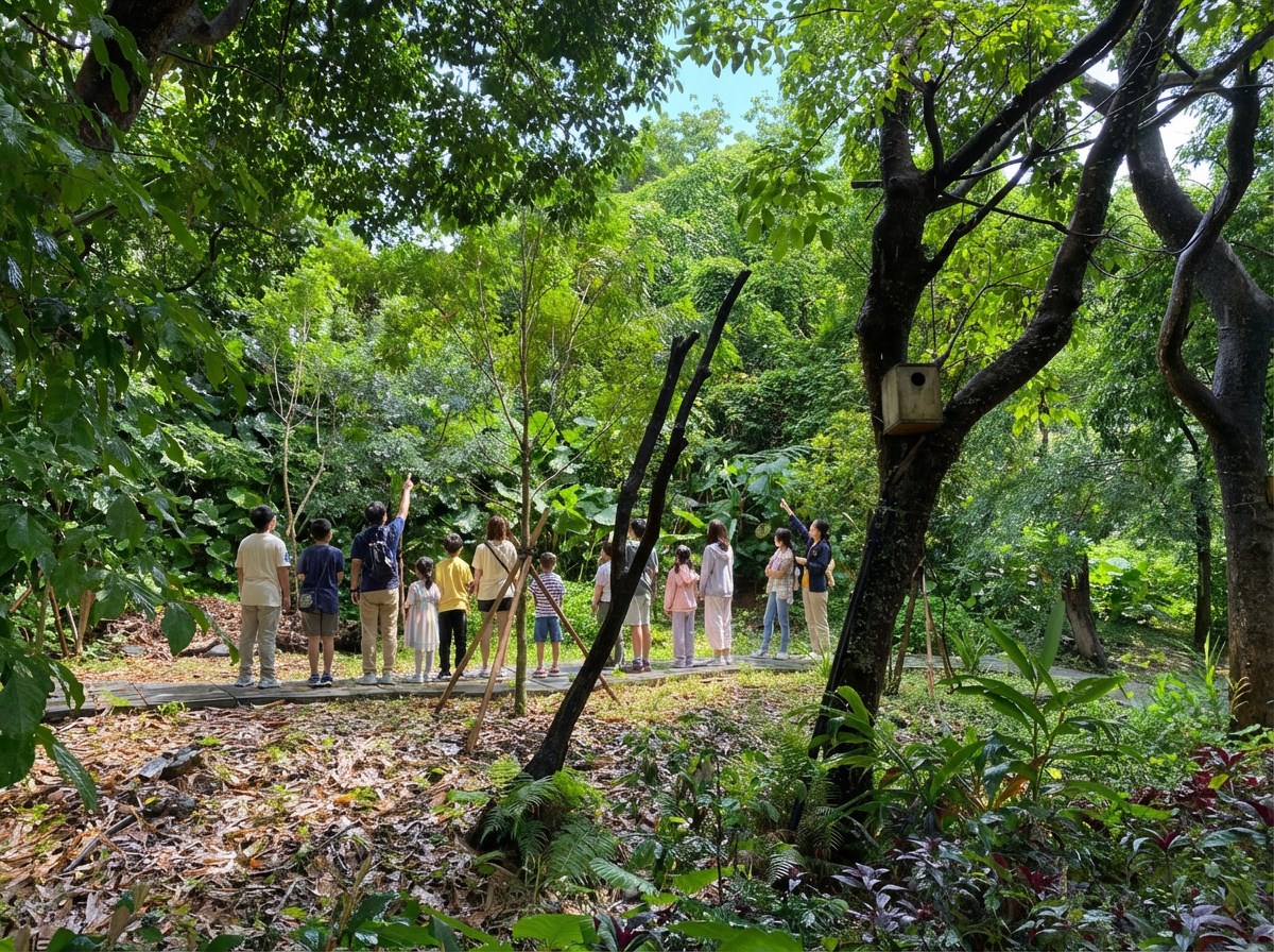 ▲營隊安排戶外生態廊道的自然導覽行程,讓孩子在綠蔭間進行實地探索。(圖 /將捷金鬱金香酒店提供)