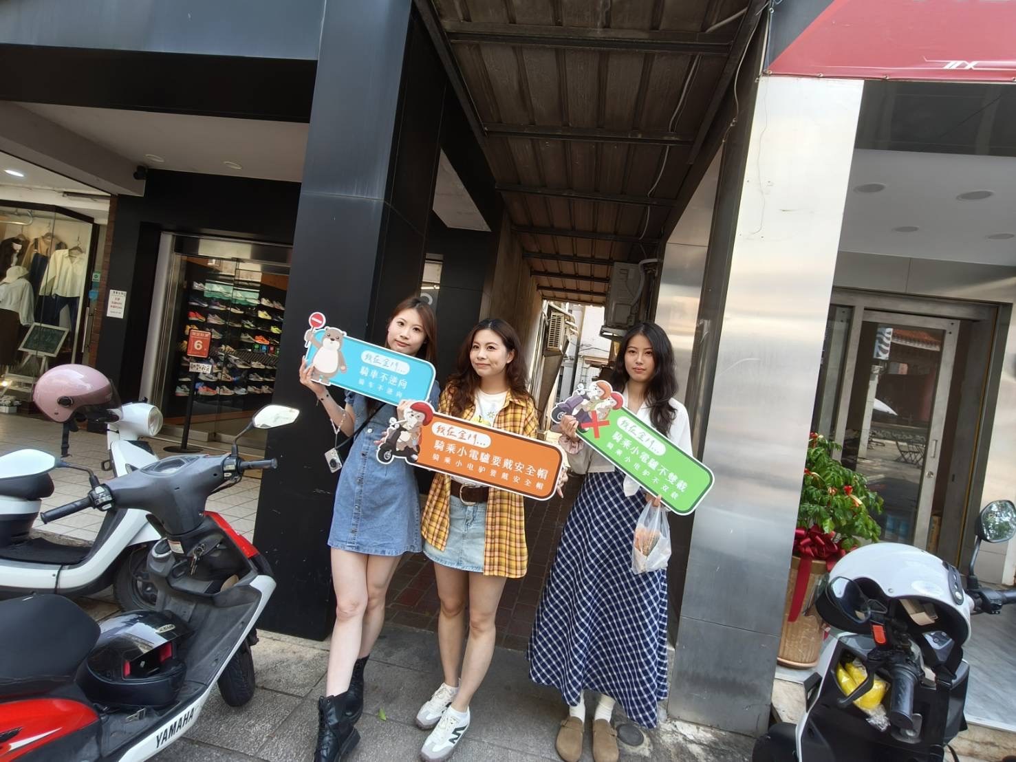 ▲金門縣政府透過圖卡解說及面對面互動方式,向旅客進行騎車安全宣導(圖/金門縣政府提供)