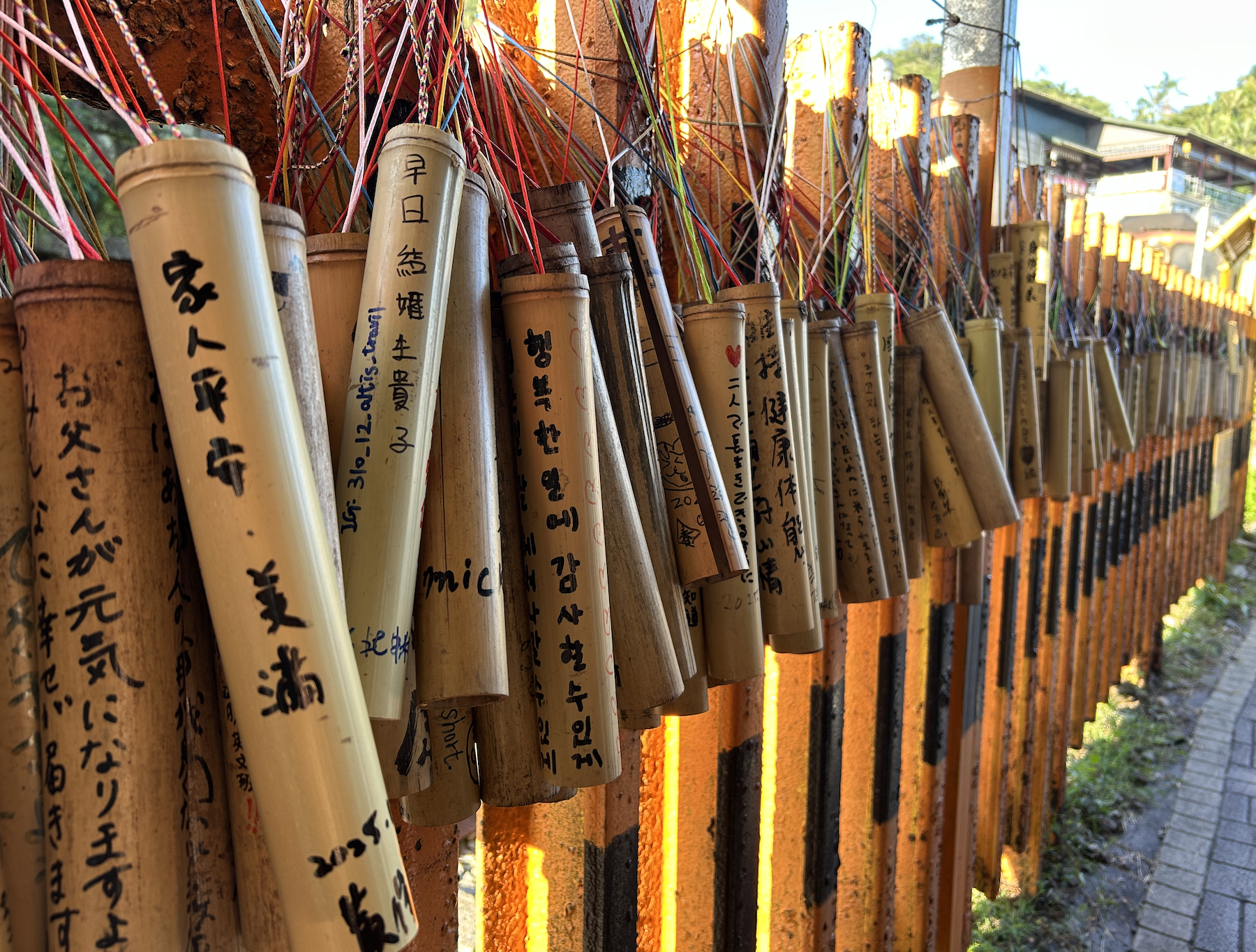 行程最後,我們在菁桐老街散步,逛著小店,還在祈福牆掛上竹筒。寫下心願的那一刻,覺得旅程有了最美好的收尾。